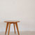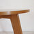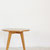 天板は柔らかな印象の円形。複数の木材の木目が中央で交差する突き板(つきいた)の貼り合わせが見られ、